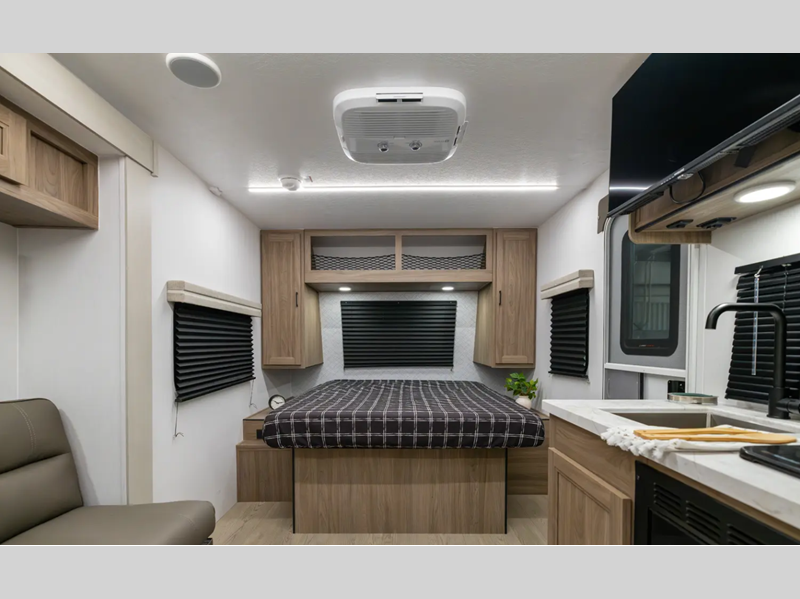 Sleeps 4 Slides 1 Length 22 ft 5 in Ext Width 8 ft Ext Height 10 ft 6 in Int Height 6 ft 9 in Hitch Weight 428 lbs GVWR 6000 lbs Dry Weight 4380 lbs Cargo Capacity 1620 lbs Fresh Water Capacity 52 gals Grey Water Capacity 35 gals Black Water Capacity 35 gals Available Beds Queen Refrigerator Type 12V Double Door Refrigerator Size 10 cu ft Cooktop Burners 2 Shower Size 32" Number of Awnings 1 Water Heater Type Suburban Tankless AC BTU 15000 btu TV Info 40" TV Awning Info 14' Velarium Velocity Switch Power Awning w/ Light Strip Axle Count 2 Shower Type Radius Similar Floorplans