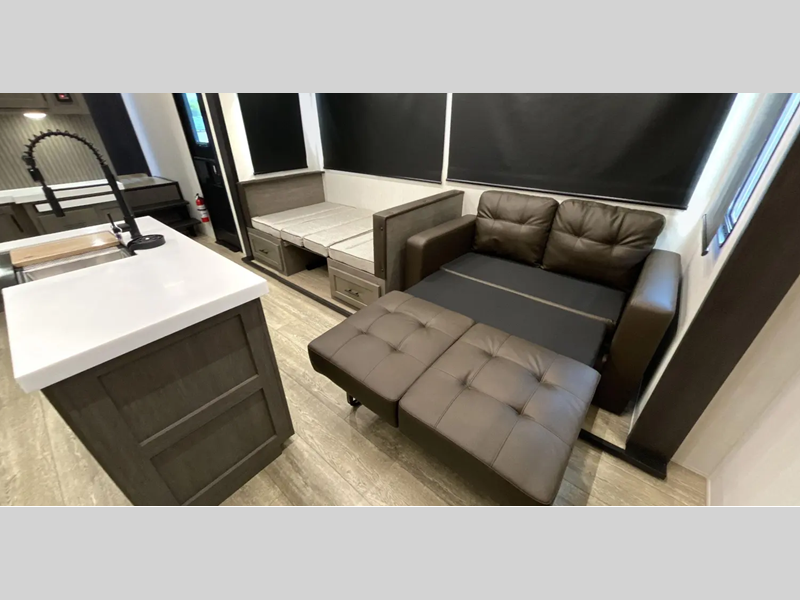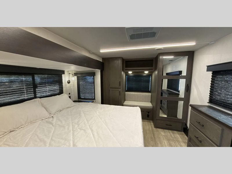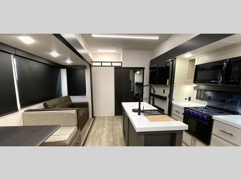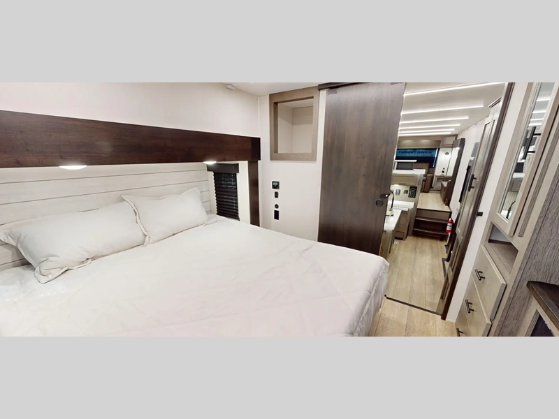 Each model features a king bed slide out, which is what set these Suite models apart from the Arctic Wolf models. Along with the added bedroom space, you'll also enjoy a second A/C unit, more storage space in the bedroom, and a "SuperStor" dual cavern basement storage compartment so nothing gets left behind. You'll feel right at home with the kitchen appliance and hardware package, plus carpetless floor design, and floor level motion sensing lights in the bedroom, bathroom, and interior steps.