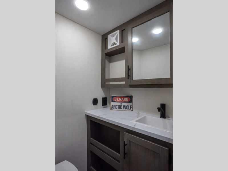Forest River Cherokee Arctic Wolf Suite fifth wheel 3950 highlights: Bath and a ... more about Cherokee Arctic Wolf Suite 3950